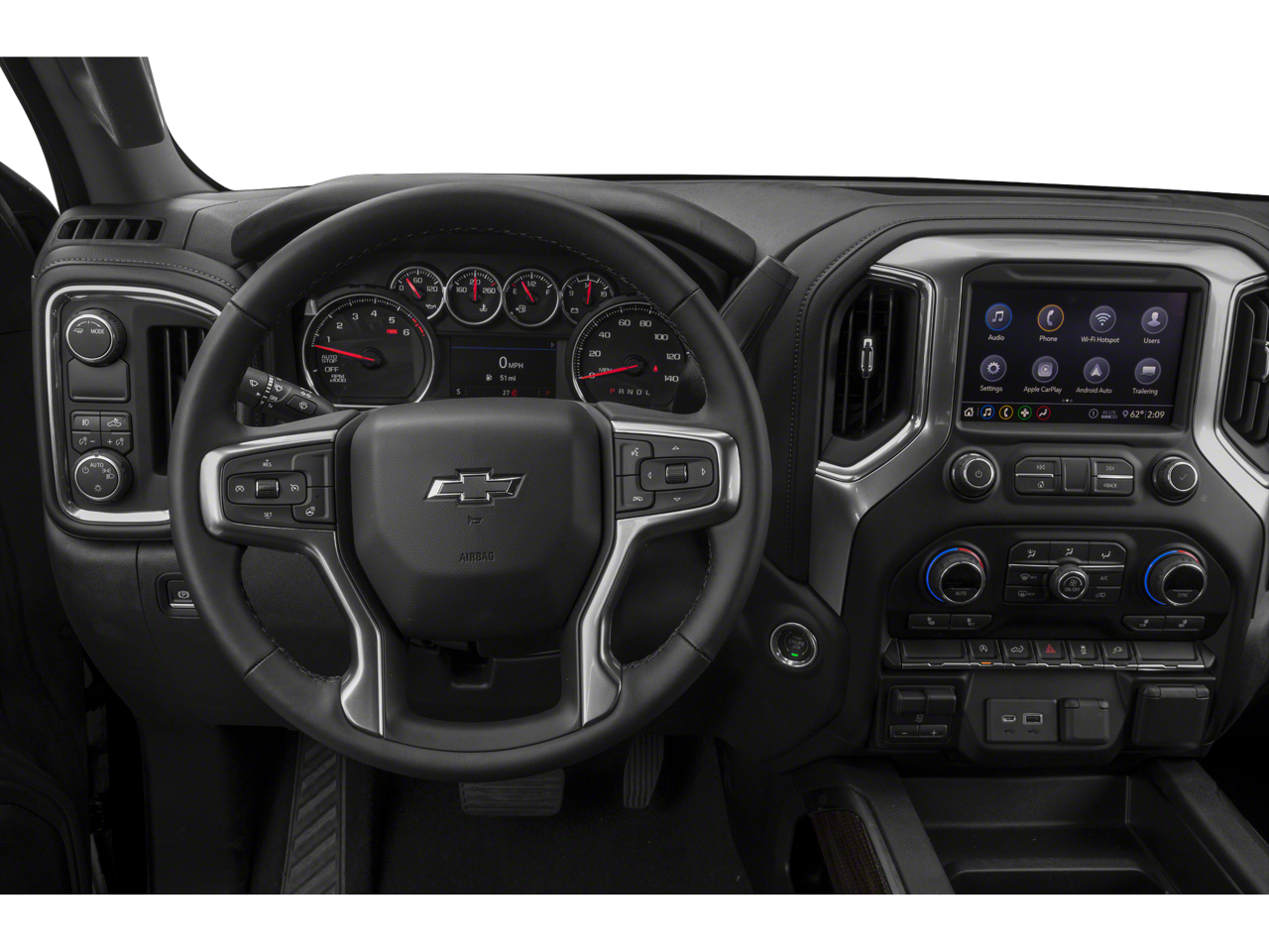 CONVENIENCE PACKAGE WITH BUCKET SEATS includes (A50) bucket seats, (D07) center console, (CJ2) dual-zone automatic climate control, (A2X) 10-way power driver seat including power lumbar, (KA1) heated driver and passenger seats, (KI3) heated steering wheel and (N37) manual tilt-telescoping steering column; (Includes (NP5) leather-wrapped steering wheel. and includes (SNR) Up-level Rear Seat with Storage Package.), CONVENIENCE PACKAGE II includes (UG1) Universal Home Remote, (A48) rear sliding power window, (KI4) 120-volt power outlet, (KC9) 120-volt bed-mounted power outlet, (IOS) Chevrolet Infotainment System with 8" diagonal color touch-screen with (MCR) USB ports, SiriusXM with 360L, (U2L) HD radio and (UVB) HD Rear Vision Camera Includes (UQA) Bose Premium Sound System.), ENGINE, 5.3L ECOTEC3 V8 (355 hp [265 kW] @ 5600 rpm, 383 lb-ft of torque [518 Nm] @ 4100 rpm); featuring all-new Dynamic Fuel Management that enables the engine to operate in 17 different patterns between 2 and 8 cylinders, depending on demand, to optimize power delivery and efficiency, AUDIO SYSTEM, CHEVROLET INFOTAINMENT 3 PLUS SYSTEM 8" diagonal HD color touchscreen, AM/FM stereo, Bluetooth® audio streaming for 2 active devices, Apple CarPlay® and Android Auto® capable, voice recognition, in-vehicle apps, cloud connected personalization for select infotainment and vehicle settings. Dealer upgradeable to embedded navigation. Subscription required for enhanced and connected services after trial period. TRANSMISSION, 8-SPEED AUTOMATIC, ELECTRONICALLY CONTROLLED with overdrive and tow/haul mode. Includes Cruise Grade Braking and Powertrain Grade Braking (STD).