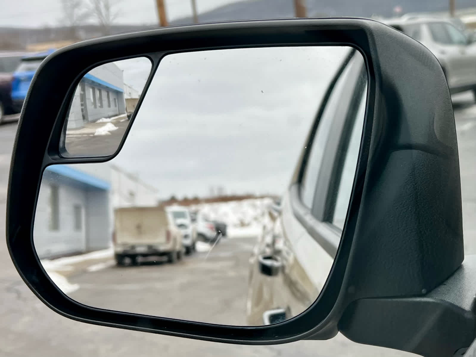 - Located in the corner of the driver-side outside mirror